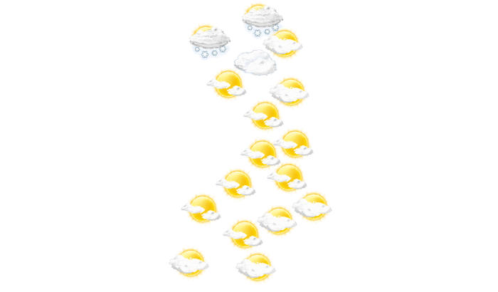 In Espoo gibt es morgens einen wolkenlosen Himmel bei Temperaturen von -1°C. Im weiteren Tagesverlauf gibt es am Nachmittag und am Abend überwiegend blauen Himmel mit vereinzelten Wolken bei Werten von 3 bis zu 7°C. In der Nacht sind Teile des Himmels mit Wolken bedeckt bei einer Temperatur von 2°C. Böen können Geschwindigkeiten zwischen 10 und 17 km/h erreichen.