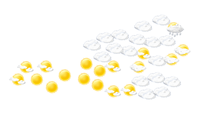 | 2 | 4 | 8 | 14 | 17 | 21 | 23 | 23 | 18 | 13 | 7 | 4 |