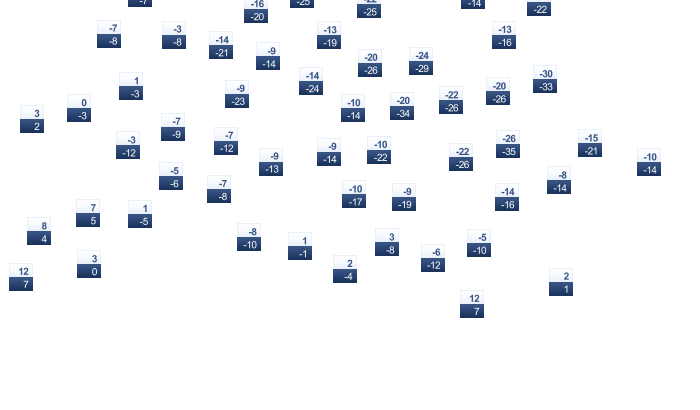 | -16 | -16 | -13 | -5 | 2 | 8 | 11 | 10 | 5 | -1 | -7 | -13 |