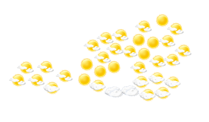 Heute Nachmittag setzt sich neben harmlosen Wolken meist die Sonne durch. Nur im Südwesten und später von Westen her ziehen dickere Wolken auf. Es weht nur leichter bis mäßiger Wind aus Ost bis Süd. Die Temperaturen steigen je nach Sonnenscheindauer auf 9 bis 19 Grad, in 2000 Metern Höhe auf rund 8 Grad.