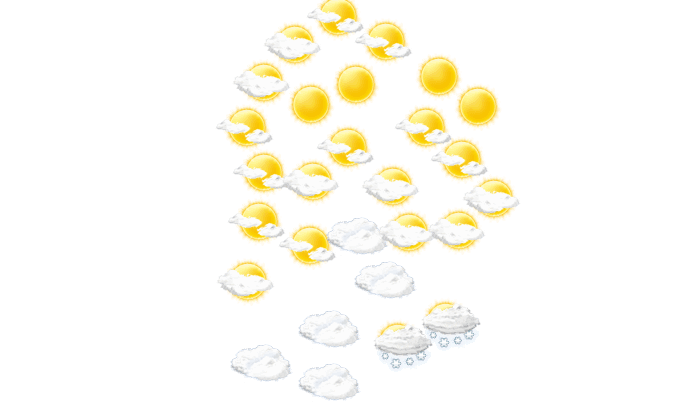 In Schmithof kommt es tagsüber zu einem Mix aus Sonne und Wolken bei Temperaturen von -4 bis 0°C. Nachts gibt es einen wolkenlosen Himmel und die Luft kühlt sich auf -5°C ab. Aus nordöstlicher Richtung weht der Wind und erreicht dabei Geschwindigkeiten von 17 bis 20 km/h. Böen können Geschwindigkeiten zwischen 46 und 51 km/h erreichen.