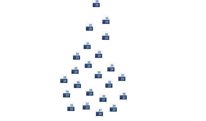 | 23 | 24 | 24 | 23 | 22 | 22 | 21 | 21 | 22 | 22 | 23 | 23 |