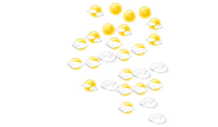 In Babamba verdecken am Morgen einzelne Wolken die Sonne bei Temperaturen von 19°C. Am Mittag gibt es mehr Wolken als Sonne und das Thermometer klettert auf 33°C. Am Abend bleibt in Babamba die Wolkendecke geschlossen bei Temperaturen von 22 bis 23°C. Nachts ist ein Blick auf die Sterne nur vereinzelt bei sonst wolkigem Himmel möglich und die Werte gehen auf 18°C zurück.
