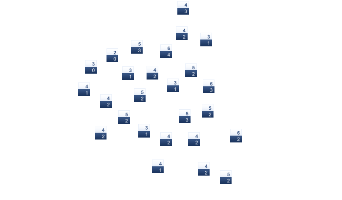 | 3 | 5 | 9 | 15 | 17 | 22 | 24 | 24 | 19 | 14 | 8 | 5 |