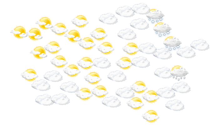 In Poprad ist es den ganzen Tag bewölkt, die Sonne zeigt sich nur vereinzelt bei Temperaturen von -2 bis 3°C. In der Nacht ist es bewölkt, die Sterne sind nur vereinzelt zu sehen bei Werten von -2°C. Böen können Geschwindigkeiten zwischen 4 und 7 km/h erreichen.