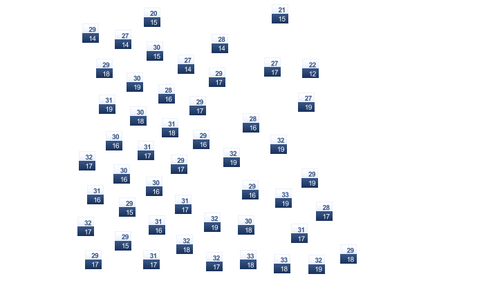 | 22 | 25 | 29 | 35 | 38 | 40 | 40 | 40 | 37 | 34 | 28 | 24 |