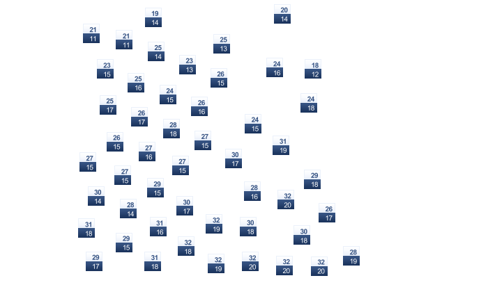 | 22 | 25 | 29 | 35 | 38 | 40 | 40 | 40 | 37 | 34 | 28 | 24 |