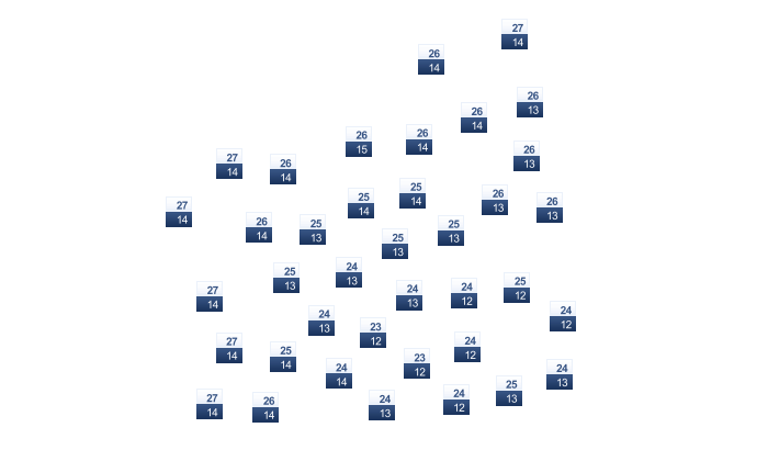 | 22 | 25 | 29 | 35 | 38 | 40 | 40 | 40 | 37 | 34 | 28 | 24 |