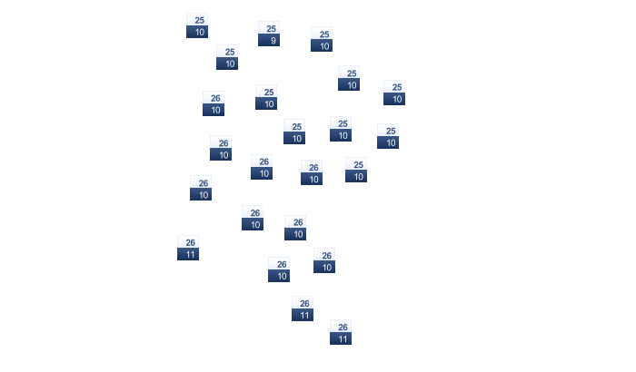 | 22 | 25 | 29 | 35 | 38 | 40 | 40 | 40 | 37 | 34 | 28 | 24 |