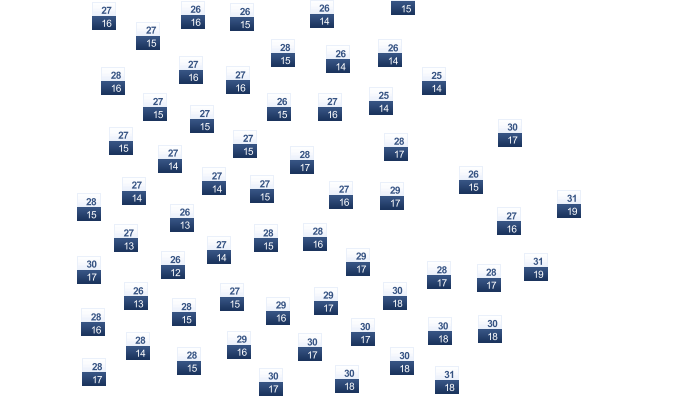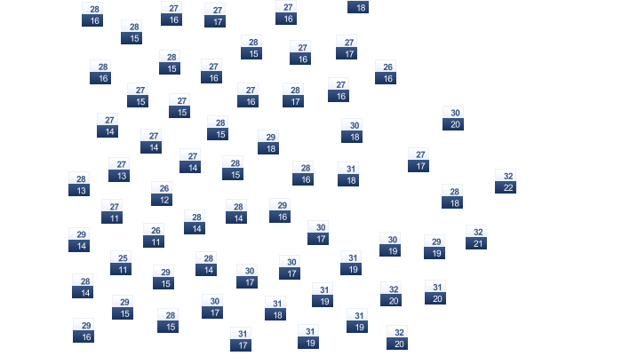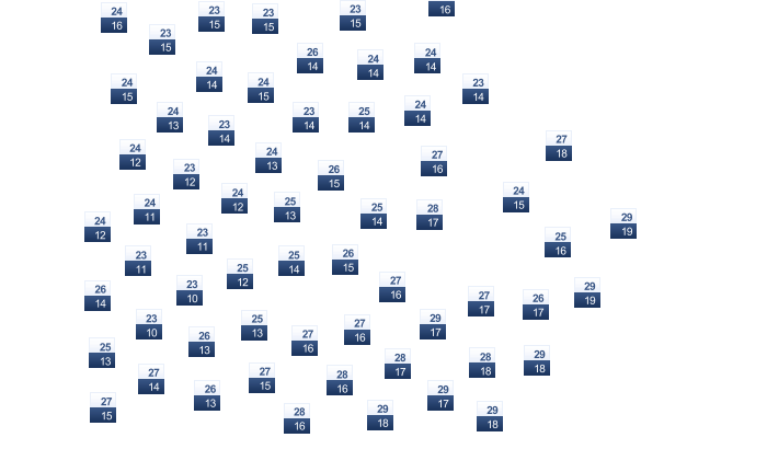 | 22 | 25 | 29 | 35 | 38 | 40 | 40 | 40 | 37 | 34 | 28 | 24 |