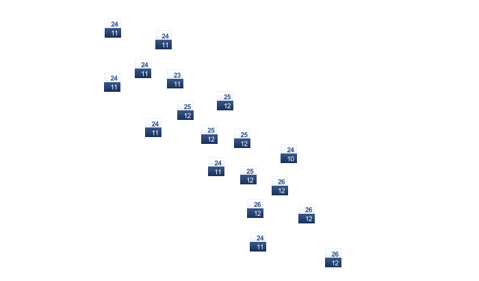 | 22 | 25 | 29 | 35 | 38 | 40 | 40 | 40 | 37 | 34 | 28 | 24 |