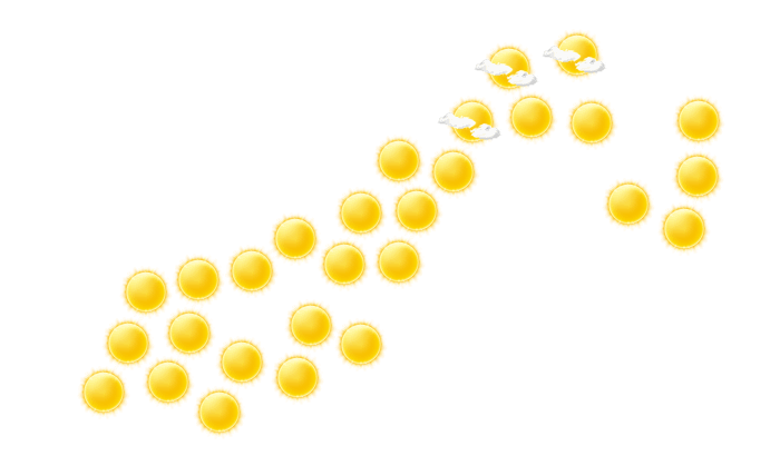 In Ḩalwān gibt es bis zum Nachmittag keine Wolken, die Sonne scheint bei Werten von 22 bis zu 33°C. Am Abend bilden sich in Ḩalwān vereinzelt Wolken und die Temperaturen liegen zwischen 27 und 30 Grad. Nachts gibt es lockere Bewölkung bei Tiefsttemperaturen von 22°C. Mit Böen zwischen 19 und 29 km/h ist zu rechnen.