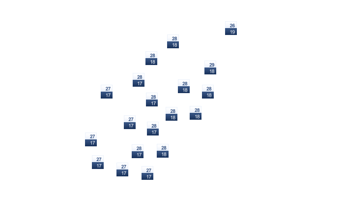 | 22 | 25 | 29 | 35 | 38 | 40 | 40 | 40 | 37 | 34 | 28 | 24 |