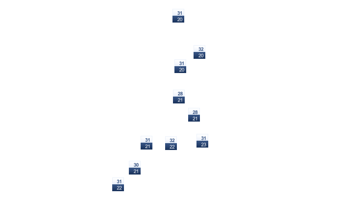 | 22 | 25 | 29 | 35 | 38 | 40 | 40 | 40 | 37 | 34 | 28 | 24 |