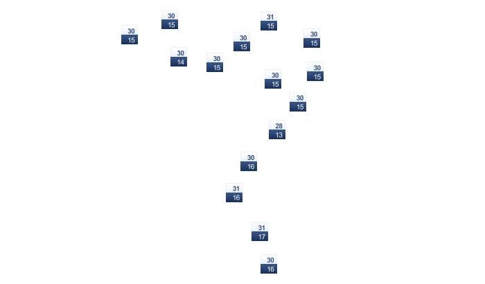 | 22 | 25 | 29 | 35 | 38 | 40 | 40 | 40 | 37 | 34 | 28 | 24 |