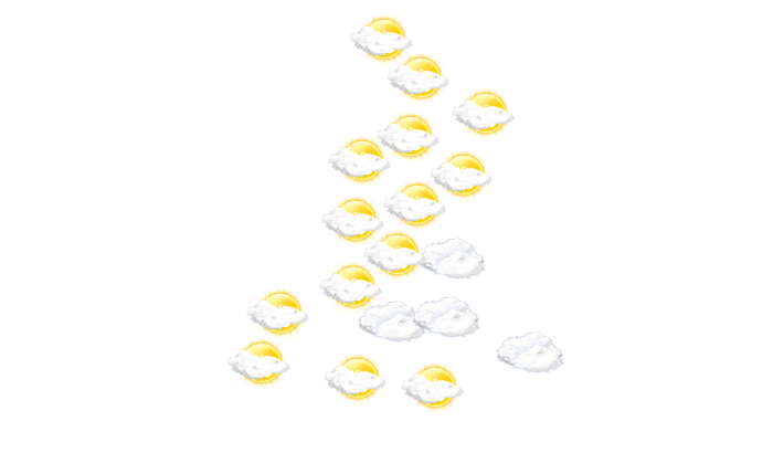 In Machinda wechseln sich tagsüber Wolken und Sonne ab bei Werten von 23 bis zu 30°C. In der Nacht ist ein Blick auf die Sterne nur vereinzelt bei sonst wolkigem Himmel möglich bei Tiefstwerten von 23°C.