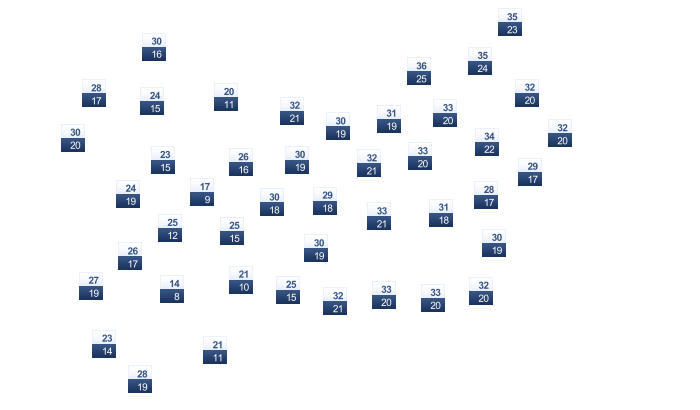 | 23 | 24 | 25 | 24 | 25 | 23 | 21 | 21 | 22 | 23 | 23 | 22 |