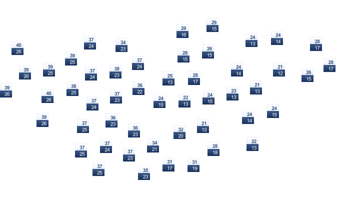| 23 | 24 | 25 | 24 | 25 | 23 | 21 | 21 | 22 | 23 | 23 | 22 |