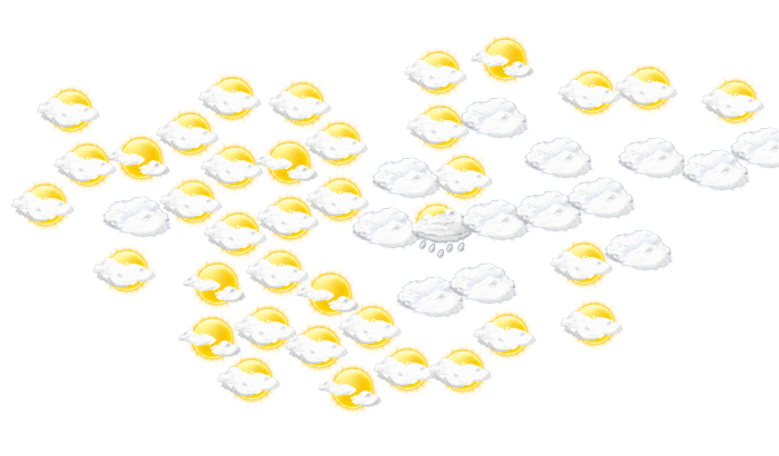 In Gambēla gibt es am Morgen lockere Bewölkung bei Werten von 24°C. Darüber hinaus ist es von mittags bis zum Abend hin wolkig bei Werten von 27 bis zu 35°C. Nachts ist es bewölkt, die Sterne sind nur vereinzelt zu sehen bei einer Temperatur von 26°C.