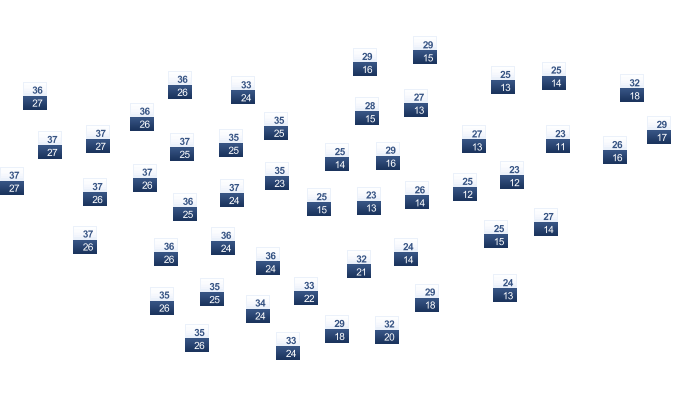 | 23 | 24 | 25 | 24 | 25 | 23 | 21 | 21 | 22 | 23 | 23 | 22 |