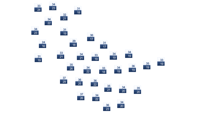 | 23 | 24 | 25 | 24 | 25 | 23 | 21 | 21 | 22 | 23 | 23 | 22 |