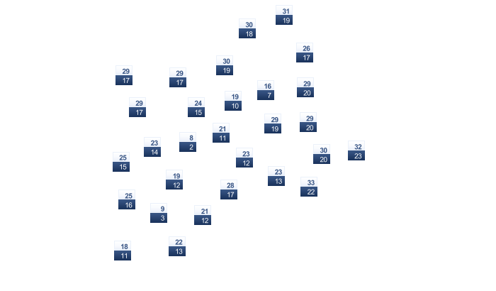| 23 | 24 | 25 | 24 | 25 | 23 | 21 | 21 | 22 | 23 | 23 | 22 |