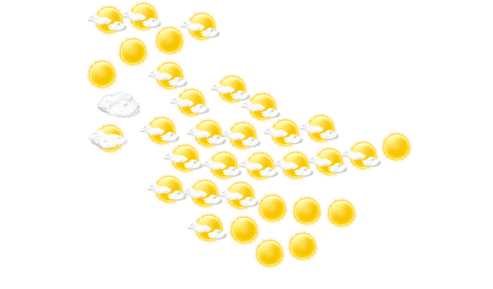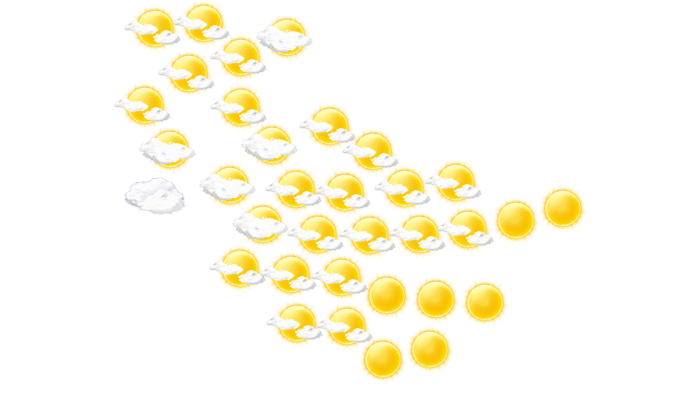 In El Roka verdecken am Tag einzelne Wolken die Sonne bei Temperaturen von 23 bis 32°C. In der Nacht ziehen Wolkenfelder durch bei Tiefsttemperaturen von 23°C.
