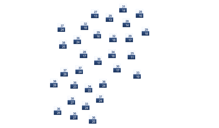 | 23 | 24 | 25 | 24 | 25 | 23 | 21 | 21 | 22 | 23 | 23 | 22 |