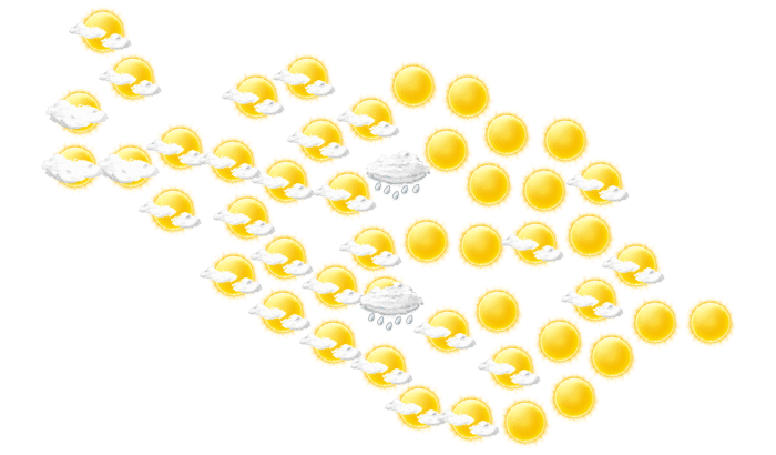 In Mek’ele bilden sich von morgens bis zum Nachmittag vereinzelt Wolken und die Temperaturen liegen zwischen 15 und 23°C. Abends ist es regnerisch bei Werten von 17 bis zu 18°C. In der Nacht ist es bedeckt bei Tiefstwerten von 15°C.