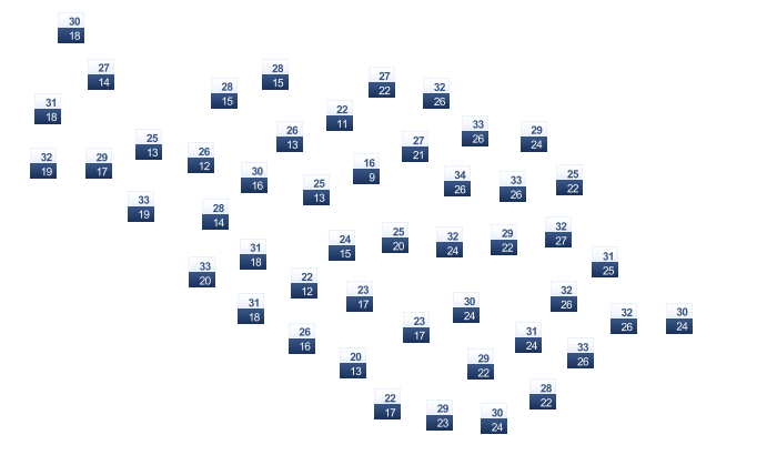 | 23 | 24 | 25 | 24 | 25 | 23 | 21 | 21 | 22 | 23 | 23 | 22 |