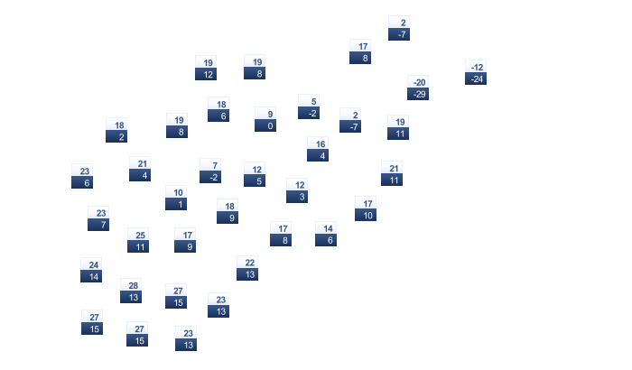 | 16 | 18 | 23 | 28 | 35 | 40 | 39 | 38 | 35 | 31 | 23 | 18 |