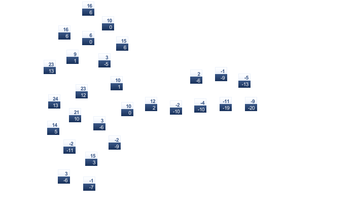 3 | 6 | 11 | 15 | 20 | 25 | 27 | 26 | 21 | 14 | 7 | 4 |