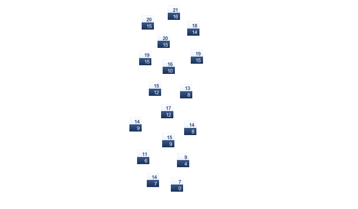 | 3 | 6 | 11 | 15 | 20 | 25 | 27 | 26 | 21 | 14 | 7 | 4 |