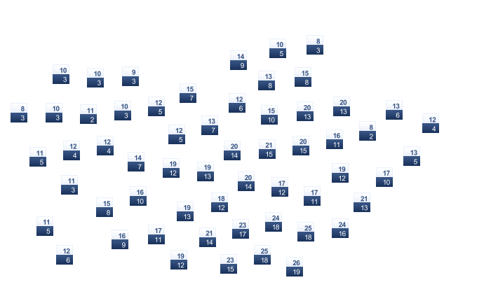 | 3 | 6 | 11 | 15 | 20 | 25 | 27 | 26 | 21 | 14 | 7 | 4 |