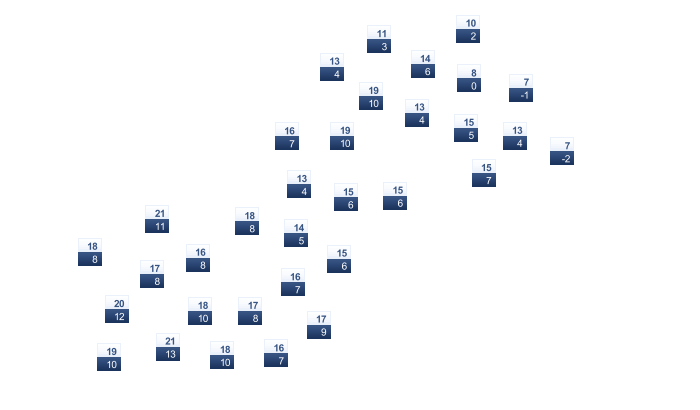 | 16 | 18 | 23 | 28 | 35 | 40 | 39 | 38 | 35 | 31 | 23 | 18 |