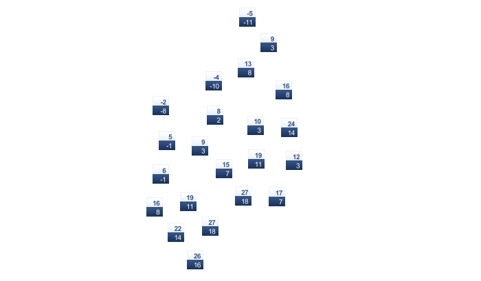 | 3 | 6 | 11 | 15 | 20 | 25 | 27 | 26 | 21 | 14 | 7 | 4 |