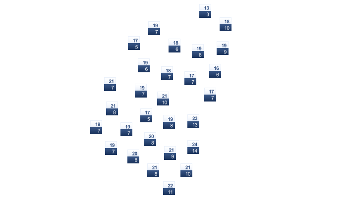 3 | 6 | 11 | 15 | 20 | 25 | 27 | 26 | 21 | 14 | 7 | 4 |