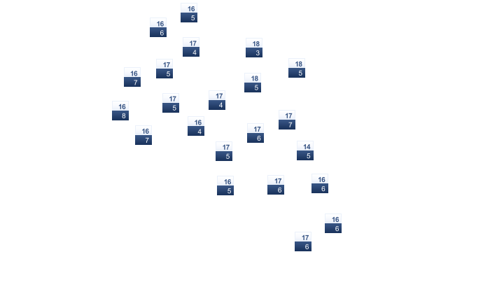| 4 | 6 | 10 | 14 | 20 | 24 | 27 | 26 | 23 | 17 | 11 | 6 |