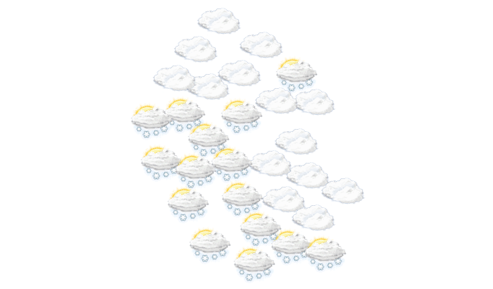 In Bujan kommt es am Tag zu Schneefällen und die Temperaturen liegen zwischen 1 und 2°C. Nachts fällt Schnee bei Tiefstwerten von 2°C. Böen können Geschwindigkeiten zwischen 6 und 10 km/h erreichen.