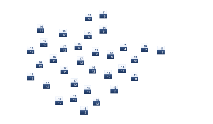 | 4 | 6 | 10 | 14 | 20 | 24 | 27 | 26 | 23 | 17 | 11 | 6 |
