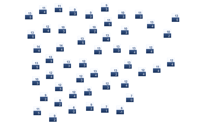 | 21 | 25 | 28 | 32 | 37 | 43 | 45 | 44 | 40 | 33 | 26 | 21 |