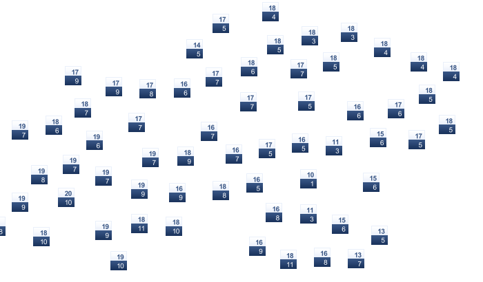 | 21 | 25 | 28 | 32 | 37 | 43 | 45 | 44 | 40 | 33 | 26 | 21 |