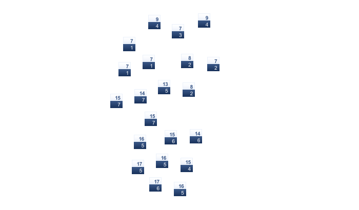 | 21 | 25 | 28 | 32 | 37 | 43 | 45 | 44 | 40 | 33 | 26 | 21 |