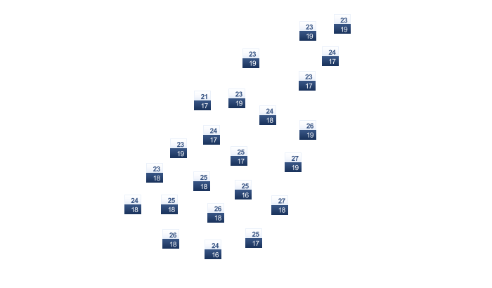 21 | 25 | 28 | 32 | 37 | 43 | 45 | 44 | 40 | 33 | 26 | 21 |