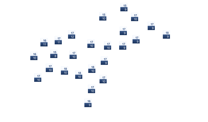 | 4 | 8 | 11 | 15 | 19 | 25 | 27 | 27 | 23 | 17 | 10 | 5 |