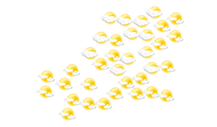In M’Daourouch bilden sich am Tag leichte Wolken bei Werten von 9 bis zu 19°C. In der Nacht ist es klar bei einer Temperatur von 10°C. Mit Böen zwischen 9 und 22 km/h ist zu rechnen.
