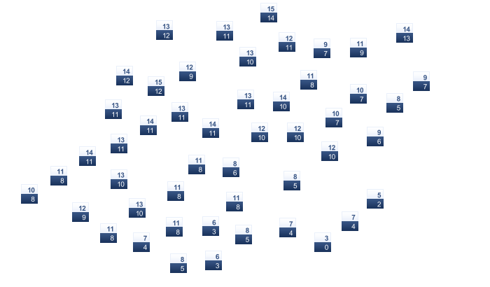 | 21 | 25 | 28 | 32 | 37 | 43 | 45 | 44 | 40 | 33 | 26 | 21 |
