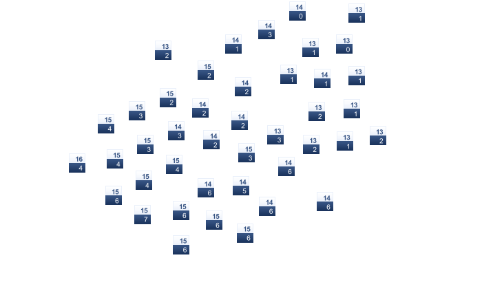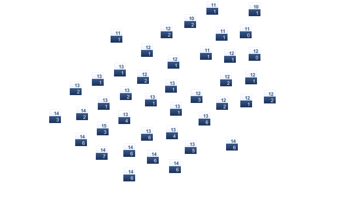 | 21 | 25 | 28 | 32 | 37 | 43 | 45 | 44 | 40 | 33 | 26 | 21 |