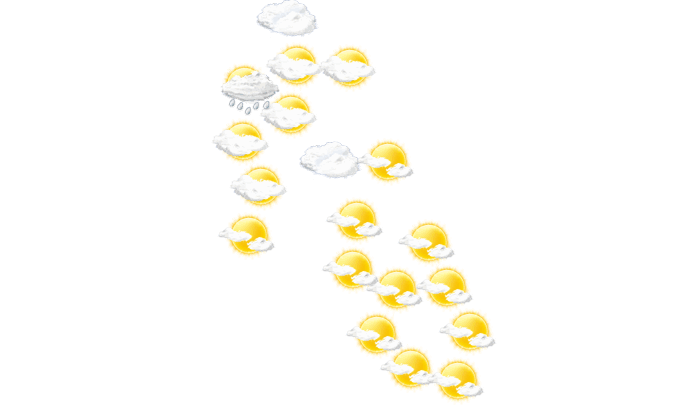 In Messaad gibt es von Tagesbeginn bis zum Nachmittag lockere Bewölkung bei Werten von 8 bis zu 18°C. Am Abend gibt es in Messaad nur selten Lücken in der Wolkendecke und die Temperaturen liegen zwischen 12 und 15 Grad. In der Nacht ist es bedeckt bei Tiefsttemperaturen von 9°C. Aus westlicher Richtung weht der Wind und erreicht dabei Geschwindigkeiten von 10 bis 27 km/h. Mit Böen zwischen 24 und 56 km/h ist zu rechnen.