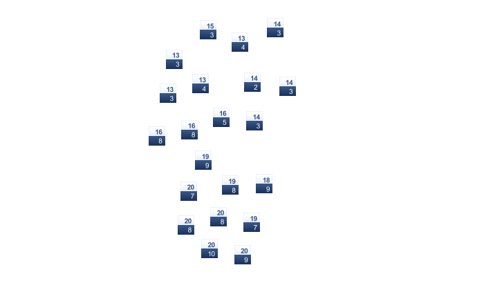| 4 | 8 | 11 | 15 | 19 | 25 | 27 | 27 | 23 | 17 | 10 | 5 |